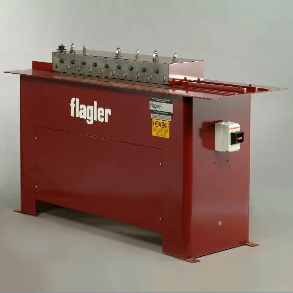 Specifications:Capacity: 20 to 30 ga.Depth of Pocket: 1/2" PocketSpeed: Approx. 100 feet per minute.Motor: 5 HP 230/460/3/60/1800 RPMDrive: Double Matched Vee BeltBase: Arc Welded Steel, heavy top plateDimension: 68" long, 24" wide, 42" high. Feed table height 35 1/8"Shipping Weight: Approx. 1000 lbs.