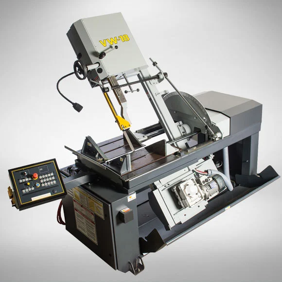 The Hyd-Mech V-Series saws are heavy-duty vertical tilt-head frame machines with the flexibility to miter up to 45° left or right. These machines are designed for round-the-clock operation. The line-up features semi-automatic and fully-automatic models with cutting capacity of up to 30".________________________________________The VW-18 II is a manual, 18" x 22" (457 mm x 558 mm) vertical cutting bandsaw with a compact design that delivers maximum versatility, ease-of-use and maintenance. Ergonomically designed with all the main functions and set up at the front.- The blade has increased from 1" to 1 1/4"