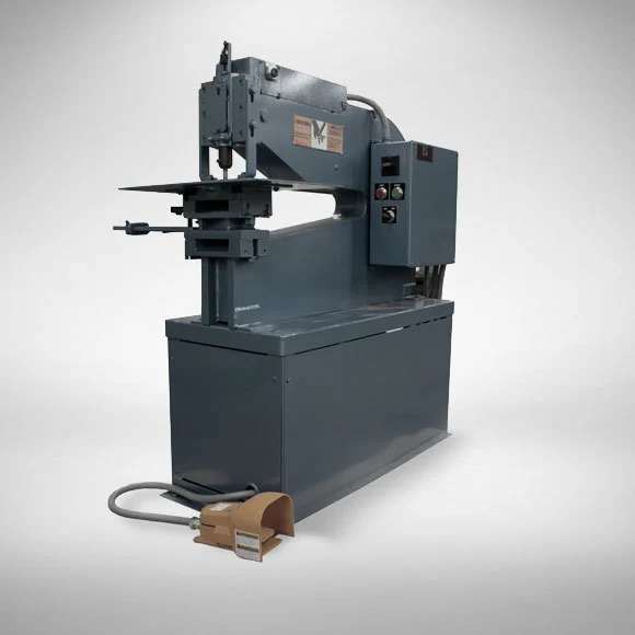 Designed for the small shop, the Deep Throat Mechanical Press economically upgrades production capability. For convenient set-up, operator efficiency and increased productivity the press has a control system that allows the operator to choose jog (for set-up) or run (for production) simply and conveniently. It also has adjustable stroke length and a full "override" capability.Maximum Rated Capacity: 8 Tons*Dimensions: