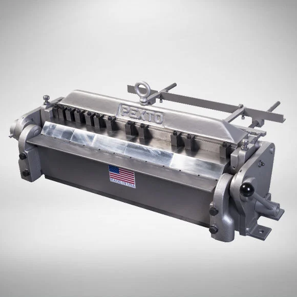 Light duty bending brakes are for light forming requirements (up to 16 gauge mild steel). When used within their rated capacity, they will form a minimum 1/2" flange over their entire length.No. PX24 Box and Pan BrakeMax. Bending Length: 24"Max. Rated Capacity, Bending Bar & Angle in Place: 16 Gauge (Mild Steel, 1" Flange)Max. Rated Capacity, Bending Bar & Angle Removed: 20 Gauge (Mild Steel, 1" Flange)Min. Reverse Bend, Bar & Angle Removed: 1/4"Min. Flange Bend: 1/2"Max. Jaw Opening (Lift of Beam): 1"Max. Bend Angle, Past Horizontal: 45° (only 20° when box fingers are used)Max. Depth of Box: 3"Back Gauge Adjustment: 0-24"Dimensions: 38" x 15" x 15"Dimensions of Optional Stand: 34" x 30" x 14"Weight: 270 Lbs.Weight of Optional Stand: 160 Lbs.The PX24 Box and Pan Brake's adjustable back gauge are ideal for small, precise box and pan work (up to 3" deep). It will accommodate sheet metal up to 16 gauge and will bend as much as a 135° angle in up to a 24" length.Standard equipment provided include one each 3/4", 1", 1¼", 1½", 3", 4½", and two 6" box fingers. Fingers are heat-treated die steel, precision ground. Set of fingers can be arranged to form 3/4" to 24" in 1/4" increments.Adjustable friction brake lock stops upper bar dead-weight drop and permits precise positioning of upper bar to scribed line on workpiece before final clamping.Minimum 1/4" reverse bends are possible with the PX24 by removing both the apron angle iron work support and apron filler plate and reducing the capacity by four gauges.Available Auxiliary AttachmentsThe pan brakes have optional special fingers to adapt them to inside mitered lip boxes, 9" long square tubes and radius bends up to 1".Extension Fingers - For inside mitered lip boxes, minimum 2 1/2" square box.Radius Fingers - Available in widths of 3/4", 1", 1 1/4", 1 1/2", 3", 4 1/2", and 6" with radii of 1/16", 1/8", 3/16", 1/4", 5/16", 3/8", 7/16", 1/2", 3/4", and 1".Open End Finger - For square tubes up to 9" long. Taper from 3/4" to 1 1/2".The optional floor mount stand (shown in photo) available as a separate item.