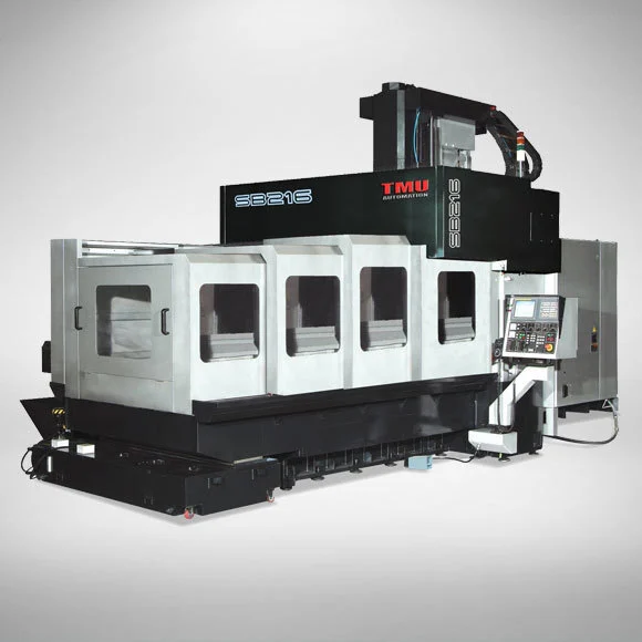 SB Series machines utilize a 35 HP spindle with a two-step gearbox up to 6,000 RPM.