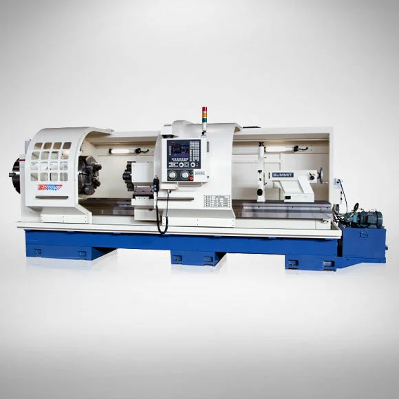 A Summit® SmartCut II Series Big Hole CNC Lathe is perfect for the machine shop that is looking for the precision of a CNC lathe at the cost of a manual lathe.These lathes combine CNC control with manual hand wheel operation and can function:As a single machines for one-off or prototype production;In semi-automatic mode for small production lots;In fully automatic mode for medium length production runs.The included Fagor 8055 CNC Control features hand wheels for manual turning and an innovative self-teaching feature that stores operation sequences from manual runs in order to reproduce the same parts perfectly in the future.