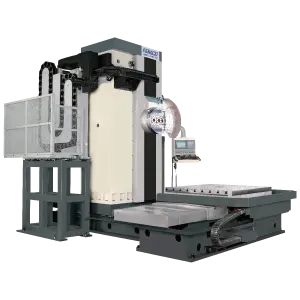 T-Type Traveling Column CNC Horizontal Boring & Milling Machine with built-in Programmable U-axis Facing and Profile Turning Head as well as an extended X-Axis travel of 157.5”. The U-Axis allows for intricate contouring of inside and outer diameters and is ideal for machining of complex valves, pumps, gearbox housings, as well as tube and joint end preparation. The BMC-110FT4 comes standard with a 50 Taper, 35 HP Geared Head Spindle; Full B-Axis Rotary Table; linear scales on X, Y & Z-Axes; chip conveyor; a Fanuc CNC control, and for added capability, also incorporates a W-Axis Bar for deep boring.