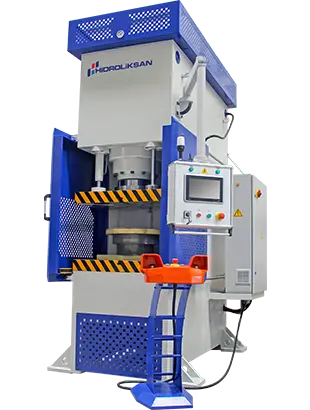 Produced up to 250 Ton capacity, Hidroliksan C type Presses are normally of standard size, yet can be produced according to customer requirements. C type presses can be used to bend, hole punch, cut and straightening according to the mold used. Since the 3 sides are open, mold mounting and disassembly can be done easily. C type presses, which are preferred for users who work with smaller molds, are produced to be automatic and manual.