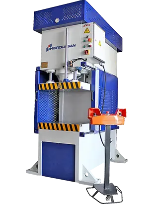 Produced up to 250 Ton capacity, Hidroliksan C type Presses are normally of standard size, yet can be produced according to customer requirements. C type presses can be used to bend, hole punch, cut and straightening according to the mold used. Since the 3 sides are open, mold mounting and disassembly can be done easily. C type presses, which are preferred for users who work with smaller molds, are produced to be automatic and manual.